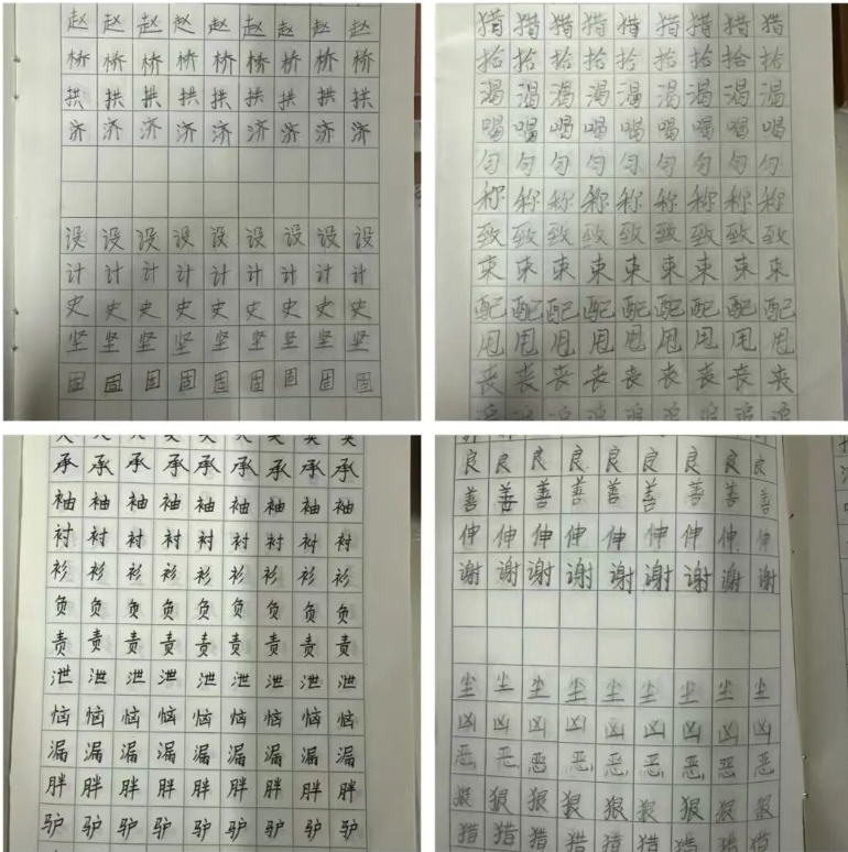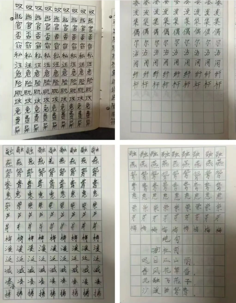 练字本上,一笔一划横平竖直,稚嫩的笔触藏着坚持的力量,卷面整洁度较上学期有了质的飞跃。