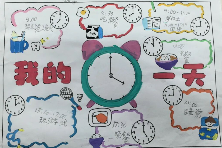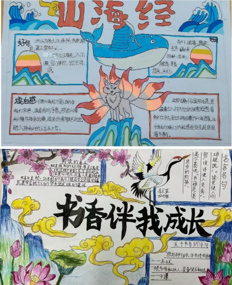 阅读打卡表里,每日半小时的阅读记录清晰完整,好词好句摘抄旁,还点缀着孩子们手绘的小插图,创意十足。