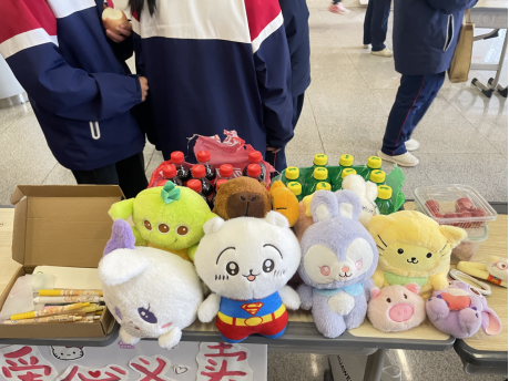 随着活动开始,各个班级的摊位迅速“开张”,校园变身热闹又温馨的爱心集市。