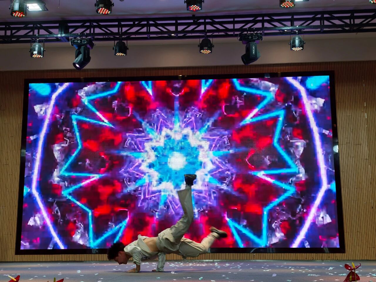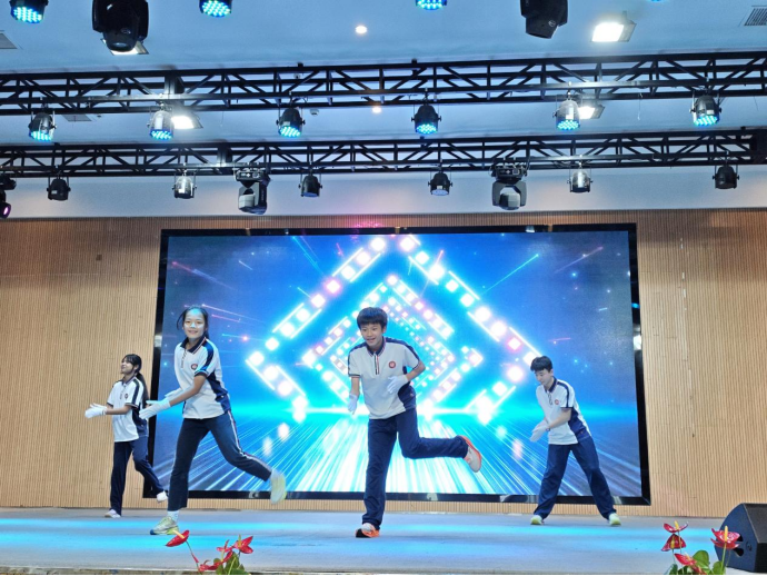 街舞少年们强势登场!703辜天乐、704文烜龙、803宋子谦、802万慧莹带来炸裂街舞串烧;804丁熙俊独舞《雨爱》,利落卡点、酷飒气场,每一个节拍都释放独属于少年的热血与不羁,台下掌声欢呼此起彼伏。